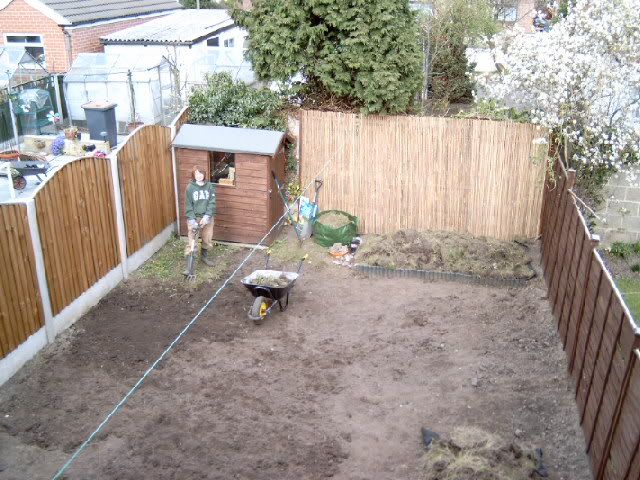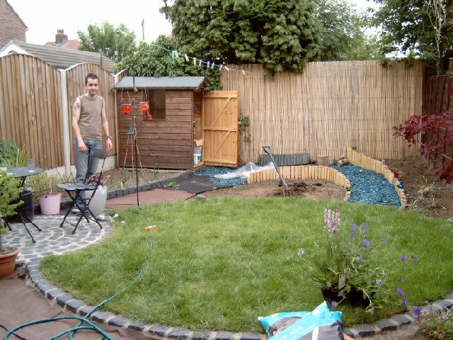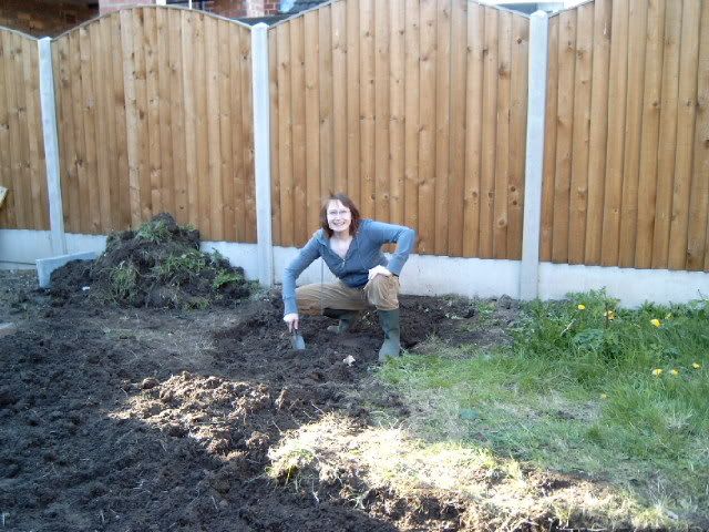 Here is me with blue hands - and red hair - whats that about?!Welcome to Jules Garden. I have created a simple design that we hope we can acheive with minimum cost and maximum effect. Start date for work is Tuesday 22nd of March 2005. I am growing veg this year!
